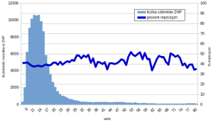 Na wykresie przedstawiamy procent chłopców i mężczyzn w stosunku do ogólnej liczebności członków ZHP w danym wieku. W ostatnich latach zauważalny jest spadek liczby mężczyzn pełniących funkcję drużynowych. Obecnie na jednego drużynowego przypada średnio 2,5 druhny drużynowej. W populacji ogólnej proporcja ta wynosi 1:1,5. Widać więc, że chłopcy zostają drużynowymi rzadziej, niż wynikałoby to ze statystyki wiekowej grupy potencjalnych kandydatów. Przyczyny tego stanu nie są jasne, analizujemy obecnie dane z Tipi pod kątem korelacji z innymi czynnikami.